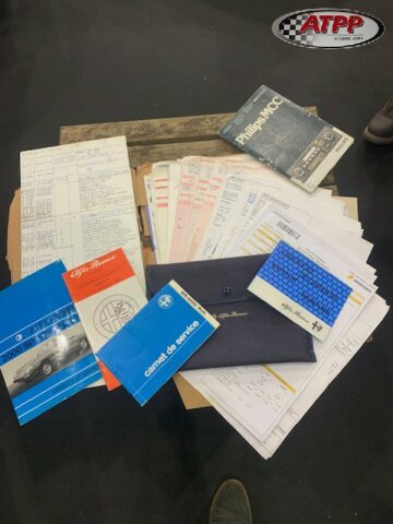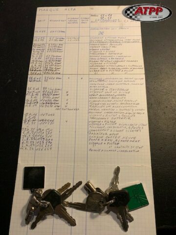 Les deux jeux de clés logotés du trèfle Alfa (et non copie) sont présent ainsi qu’un document manuscrit rédigé par les propriétaires avec toutes les interventions depuis 1992 à 2024.